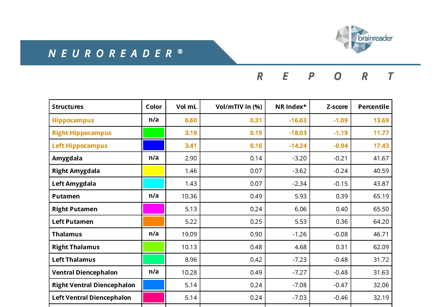 Neuroreader® provides automated, standardized brain volumetric analysis that:
